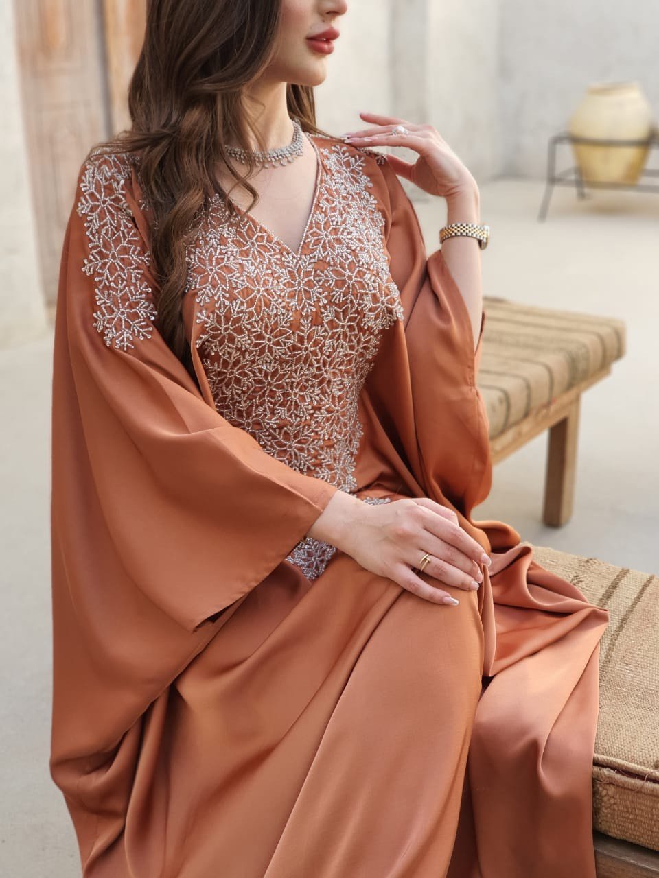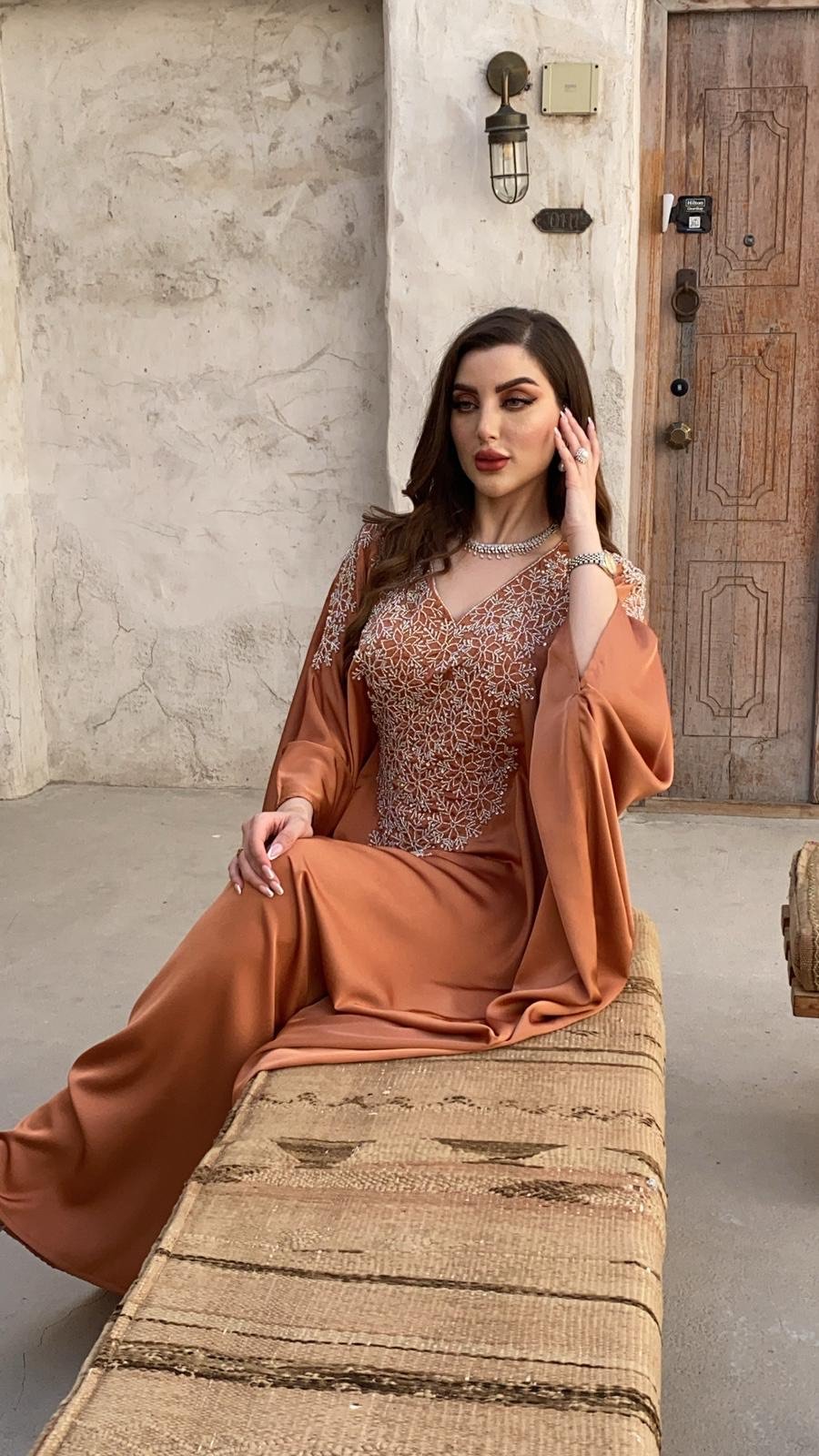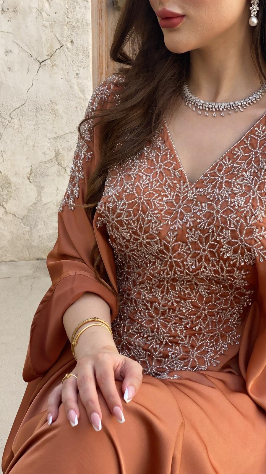 قطعة من اجود انواع القماش الايطالي المشكـوك بـ خرز باللون الفضـي القياس فري سايز يمكنك اختيار الطول ..