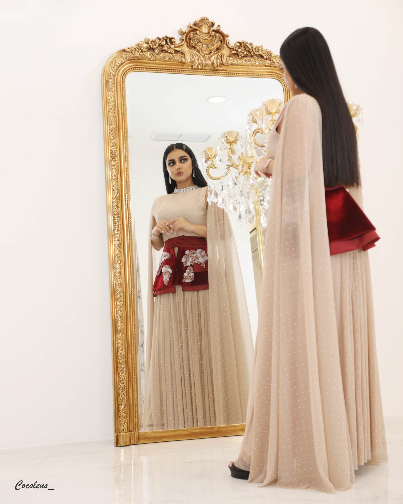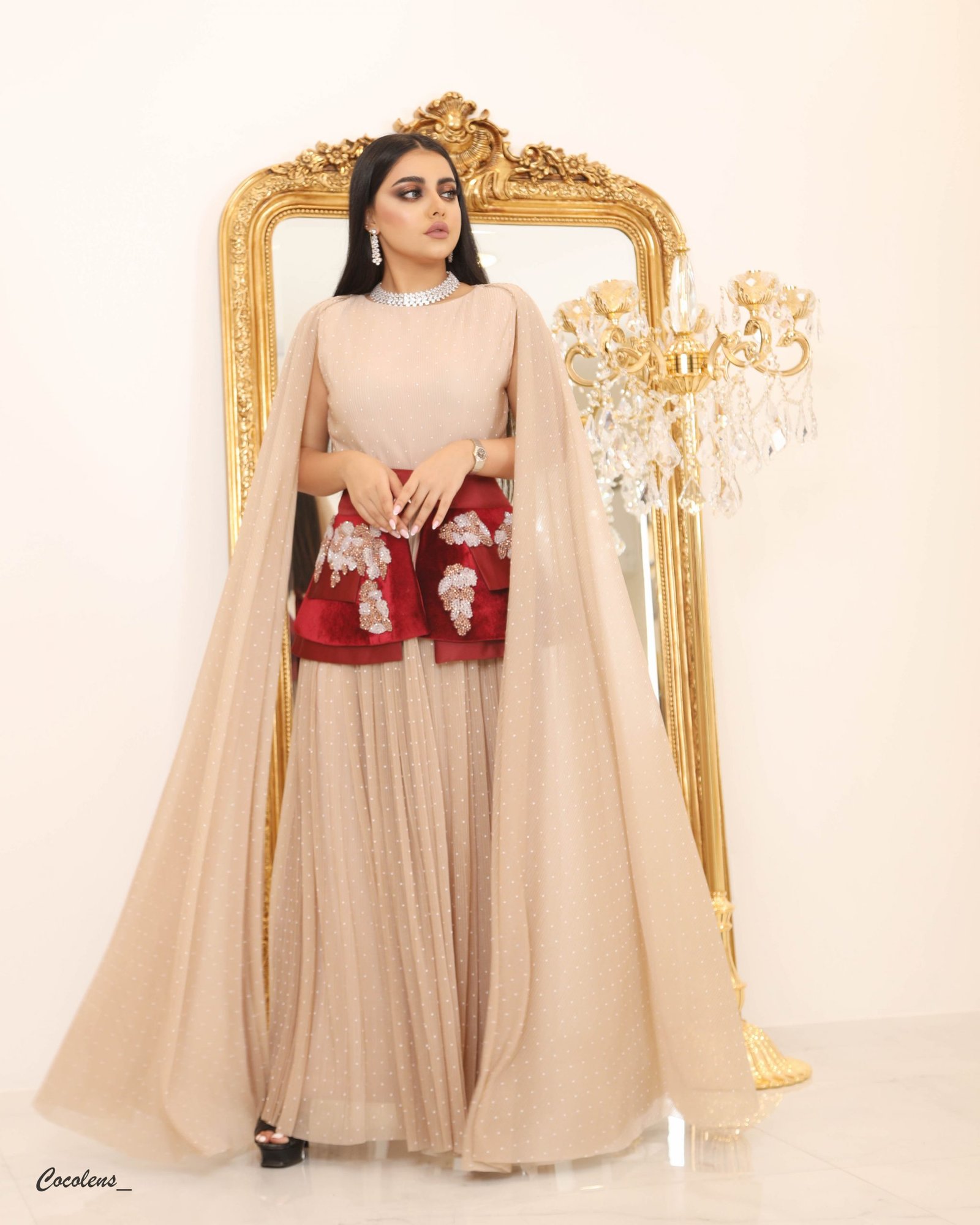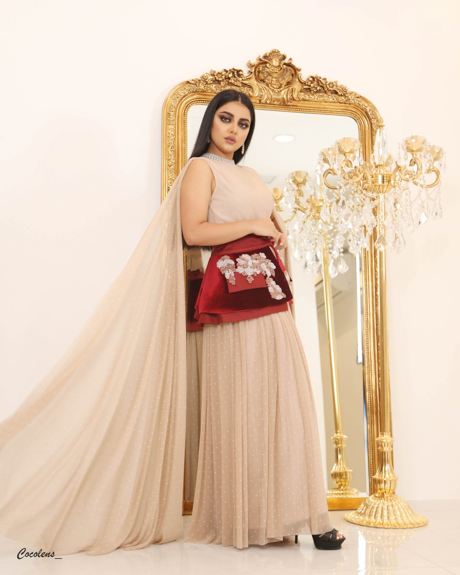 قطعة بلاسية ، بحزام من المخمل الكوري بلون عنابي مشكوك بالشوارفسكي الروزقولد والفضي في فصل الصيف يمكنك لبس القطعة من غير الحزام المخمل